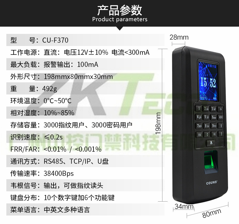 指紋考勤門禁機高優CU-370